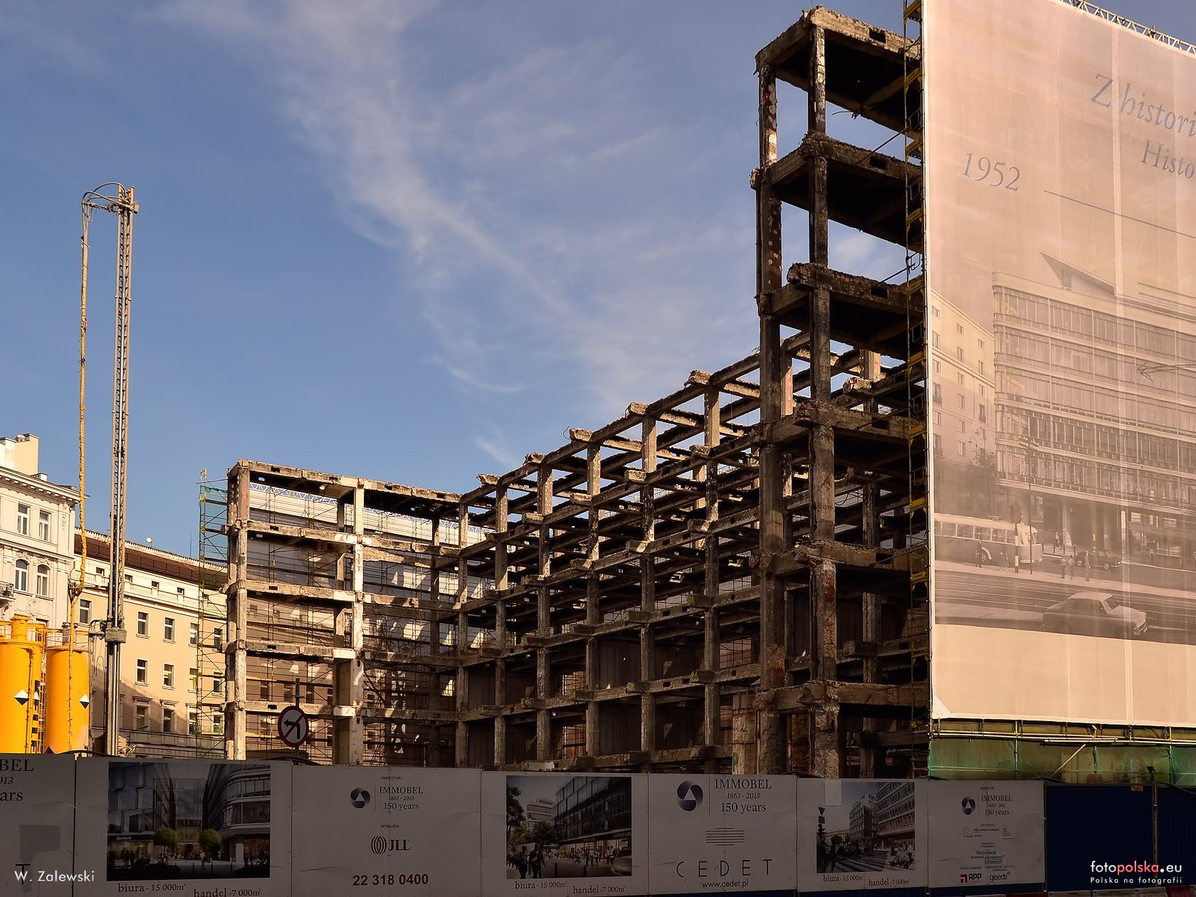 1 pobranie 1421 odsłon 6 średnia ocen Poprzednie i następne zdjęcia maj Obiekty widoczne na zdjęciu Cedet więcej zdjęć (208) Architekci: Zbigniew Ihnatowicz, Jerzy Romański Zbudowano: 1948-51 Dawniej: Centralny Dom Towarowy, Centralny Dom Dziecka, Dom Towarowy Smyk, Zabytek: 715 z 29-09-2006 Projekt Zbigniewa Ihnatowicza i Jerzego Romańskiego zbudowany po wojnie w ramach pierwszego planu trzyletniego. Oddany do użytku 22 lipca 1951 roku. W latach 50-tych jeden z największych domów towarowych w Polsce. Do 1958 roku na VI piętrze znajdowała się restauracja "Stolica". Na jej miejscu uruchomiono Salon Mody. Od 1968 CDT połączono organizacyjnie z przedsiębiorstwem "Domy Towarowe Centrum". Od 1969 Centralny Dom Dziecka. W 1975 budynek częściowo spłonął. Odbudowany w 1977. Siedziba domu towarowego "Smyk". ul. Krucza więcej zdjęć (686) Ulica Krucza – ulica w warszawskiej dzielnicy Śródmieście. Ulica rozpoczyna swój bieg od skrzyżowania ulic Pięknej i Mokotowskiej, następnie biegnie w kierunku północnym, przecinając z obu stron ulice: Wilczą, Hożą, Wspólną, Żurawią, Nowogrodzką, dochodzi do Alej Jerozolimskich i po przejściu przez skrzyżowanie przecina ją jeszcze ulica Widok, swój kończy rozwidleniem – prawe nosi nazwę ul. Szpitalna, zaś lewe ul. Zgoda. Ulica wytyczona została około 1770 od zbiegu ulic Mokotowskiej i Pięknej do Nowogrodzkiej. Przedłużenie ulicy do Szpitalnej utrudniał podmokły grunt, nazywany potocznie krukiem – stąd nazwa ulicy. Ruch budowlany na ulicy rozpoczął się po 1870. Po obu stronach została ona zabudowana kamienicami czynszowymi. Przed I wojną światową przy ulicy istniało duże skupisko sklepów z tanią konfekcją damską. W czasie II wojny światowej zabudowa ulicy została zniszczona w blisko 100%. Ocalało kilka kamienic przy ulicach Nowogrodzkiej i Wilczej. Wypalone ruiny wyburzono w 1946 i ulicę przeznaczono pod zabudowę dzielnicy ministerstw. 1 listopada 1949 nastąpiło otwarcie dla ruchu nowej, poszerzonej Kruczej. Ostatecznie pomysł odbudowy Kruczej jako city – dzielnicy wyłącznie biurowej został uznany za błędny z powodu pustoszenia dzielnicy po godzinie 17. Dlatego po 1956 uzupełniono zabudowę o bloki mieszkaniowe. Ulica znalazła się w obrębie tzw. dzielnicy ministerstw. Ostatnim zrealizowanym w jej obrębie budynkiem był otwarty 1 października 1957 „Grand Hotel” Orbisu z 416 pokojami (obecnie Mercure Grand Hotel). W okresie od 1 października 1950 do 11 czerwca 1972 Krucza była najważniejszym ciągiem trasy trolejbusowej – kursowały tutaj ramowo trzy linie: 51, 53 i 54. 1 listopada 1953 na ulicy pojawia się pierwszy autobus linii 117. Źródło: |