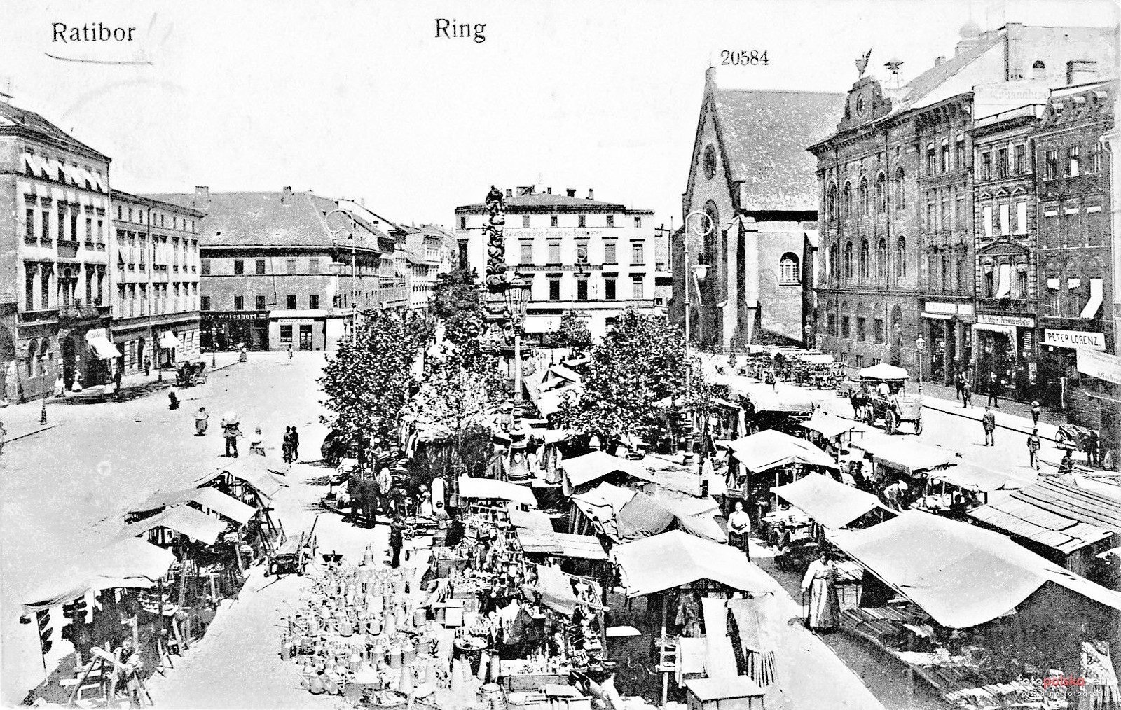 19 pobrań 1485 odsłon 6 średnia ocen Poprzednie i następne zdjęcia labeo7 Obiekty widoczne na zdjęciu Rynek więcej zdjęć (532) Dawniej: Ring Raciborski Rynek to prostokątny plac o wymiarach 116 metrów w kierunku północ-południe i 58 metrów w kierunku wschód-zachód. W średniowieczu na środku Rynku umiejscowiony był ratusz, dom kupców, wzmiankowany w 1313 roku i sukiennice, wzmiankowane w 1293 roku już jako murowane. Najprawdopodobniej w XVI wieku usunięto zabudowania bloku śródrynkowego. Nowy ratusz wybudowano we wschodniej pierzei placu. W 1727 na środku Rynku stanęła Kolumna Maryjna. Podczas II wojny światowej zabudowa placu uległa prawie całkowitemu zniszczeniu. Kamienice po zachodniej stronie odbudowano stylizując je na renesansowe kamienice mieszczańskie. Pierzeję wschodnią zabudowano blokami. Niezabudowana od 1945 roku działka po stronie północnej w 2009 roku została sprzedana. Być może już niebawem stanie tam budynek, zamykający północną pierzeję. Z Rynku odchodzą trzy ulicę w stronę zachodnią, po jednej w stronę północną i południową, oraz dwie na wschód. W północno-wschodnim narożniku znajduje się podominikański kościół św. Jakuba. W narożniku północno-zachodnim - pomnik biskupa Józefa Gawliny. |