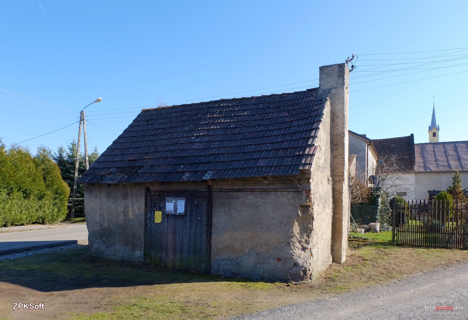 27 marca 2016 , Niewielki budyneczek z kominem, najprawdopodobniej stara kuźnia. Wygląda na to, że służy za składzik.Skomentuj zdjęcie |