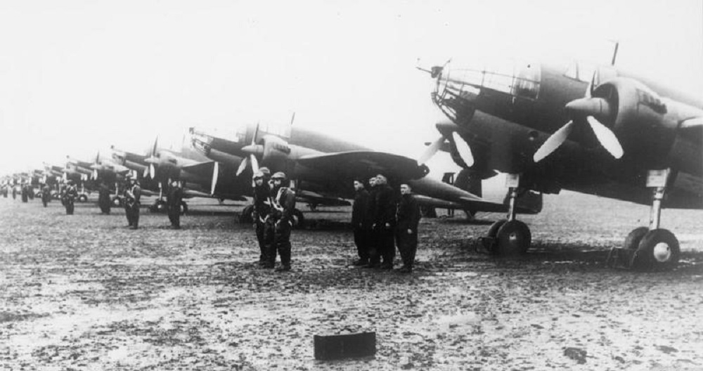 kwiecień 1939 , Samoloty "Łoś" wraz z załogami na lotnisku Okęcie.Skomentuj zdjęcie |