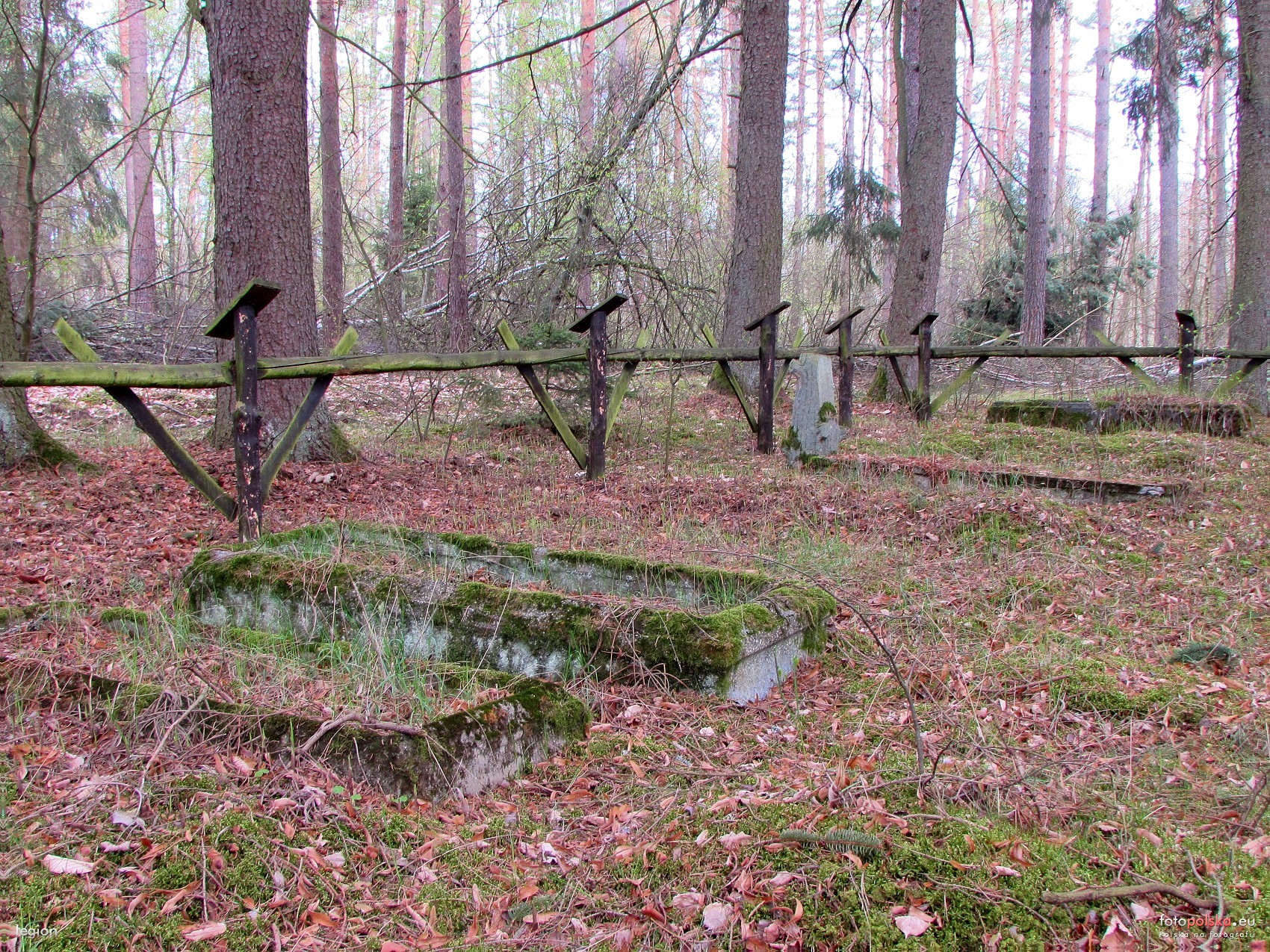 0 pobrań 598 odsłon 6 średnia ocen Poprzednie i następne zdjęcia legion Obiekty widoczne na zdjęciu Cmentarz ewangelicki więcej zdjęć (6) Zbudowano: XIX w. Zapomniany nieduży ewangelicki cmentarz położony przy leśnej drodze w pobliżu leśniczówki. Założony w XIX wieku stanowi dziś jedyną pamiątkę po ludziach, którzy tu kiedyś mieszkali. Został on ogrodzony i od czasu do czasu ktoś tam zagląda, gdyż znajdują się tam wypalone znicze. Jednak został on zdewastowany, zapewne przez złomiarzy, ponieważ wszystkie metalowe części zniknęły. Podobno wg mieszkańców w 1985 roku płyty nagrobne były jeszcze czytelne, teraz zachowała się zaledwie jedna. Dawny cmentarz ewangelicki położony na terenie leśnym, za budynkami leśnictwa. Założony w połowie XIX w., w dokumentach 1980 r. opisany krzyż z 1876 r. Założony na planie czworoboku zbliżonego do trapezu, z wysoką zielenią wzdłuż granic zach. i pd. Mogiły o układzie rzędowym na osi pn.- pd., zachowane obudowy i relikty nagrobków. Ostatnio teren cmentarza uporządkowany i ogrodzony. |