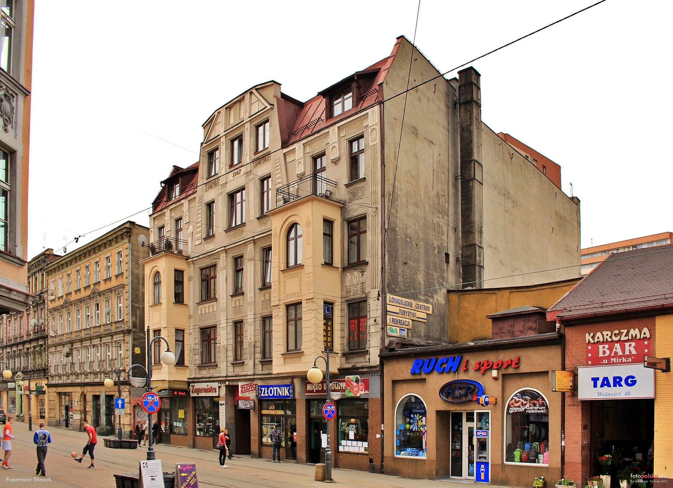5 pobrań 741 odsłon 6 średnia ocen Poprzednie i następne zdjęcia Eugeniusz S. Obiekty widoczne na zdjęciu Wolności 50 więcej zdjęć (4) ul. Wolności więcej zdjęć (1138) Dawniej: Kaiser Strasse, Adolf Hitler Strasse Dzisiejszą ulicę Wolności wytyczono w latach 1848-1856. Połączyła dzielnice podmiejskie ze stacją kolejową Królewska Huta. Najpierw nosiła nazwę Actienchausse, później przemianowano ją na Kaiserstrasse. W 1922 roku, po przejęciu miasta przez Polskę, wprowadzono nazwę Wolności, która – oprócz krótkiej, wojennej przerwy na Hitlerstrasse – trwa do dzisiaj. Ulica Wolności ma prawie dwa kilometry długości i w dużej części zabudowana jest interesującymi kamienicami z przełomu XIX i XX wieku. Uwagę zwracają style historyczne, których najpiękniejszym reprezentantem jest neogotycki gmach Poczty Głównej. Secesję reprezentują chociażby: kamienica pod numerem 21, mieszcząca kiedyś aptekę, czy kamienica „Pod Dzwonem” (na rogu „Wolki” i ul. Sobieskiego) z najdłużej działającą w Chorzowie restauracją. Najstarszym budynkiem jest neorenesansowa willa z 1871 roku, stojąca na rogu ulicy Żeromskiego. Prawie naprzeciw niej wznosi się pierwszy chorzowski drapacz chmur – modernistyczny budynek Komunalnej Kasy Oszczędności z 1937 roku. Pod numerem 22 mieści się kino Panorama - jedno z najstarszych w Polsce. Działało już przed pierwszą wojną światową. W tym miejscu koniecznie trzeba przywołać postać urodzonego w Chorzowie Franza Waxmana. Ten dyrygent i kompozytor zrobił oszałamiającą karierę w Hollywood - dwukrotnie otrzymał Oscara! Współczesna Wolka i ta ze starych pocztówek są bardzo podobne. Niewiele obiektów ubyło. Chociaż - po jednym została wyrwa. W 1940 roku hitlerowcy zburzyli monumentalną synagogę, która znajdowała się pod nr. 12. |