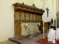 14 maja 2016 , Rokokowe stalle - ozdobne ławy w prezbiterium kościoła św. Apostołów Piotra i Pawła.