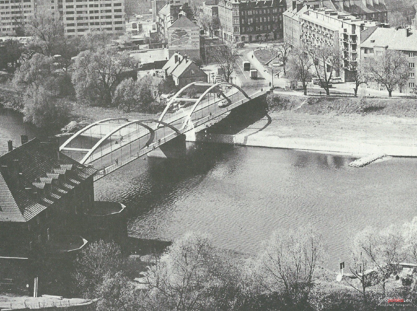 Lata 1973-1975 , Panorama bliskiego Zaodrza z południowej wieży katedry. Na pierwszym planie hotel "Piast", most Piastowski i plac Piłsudskiego. Bloki na Łąkowej w budowie.Skomentuj zdjęcie