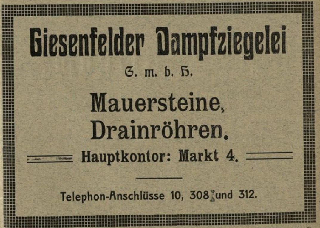 1910 , Cegielnia parowa Giżynek sp. z o.o. Cegły murarskie, rury do drenażu. Główny punkt handlowy: Rynek 4. Telefon 10, 308 i 312Skomentuj zdjęcie |