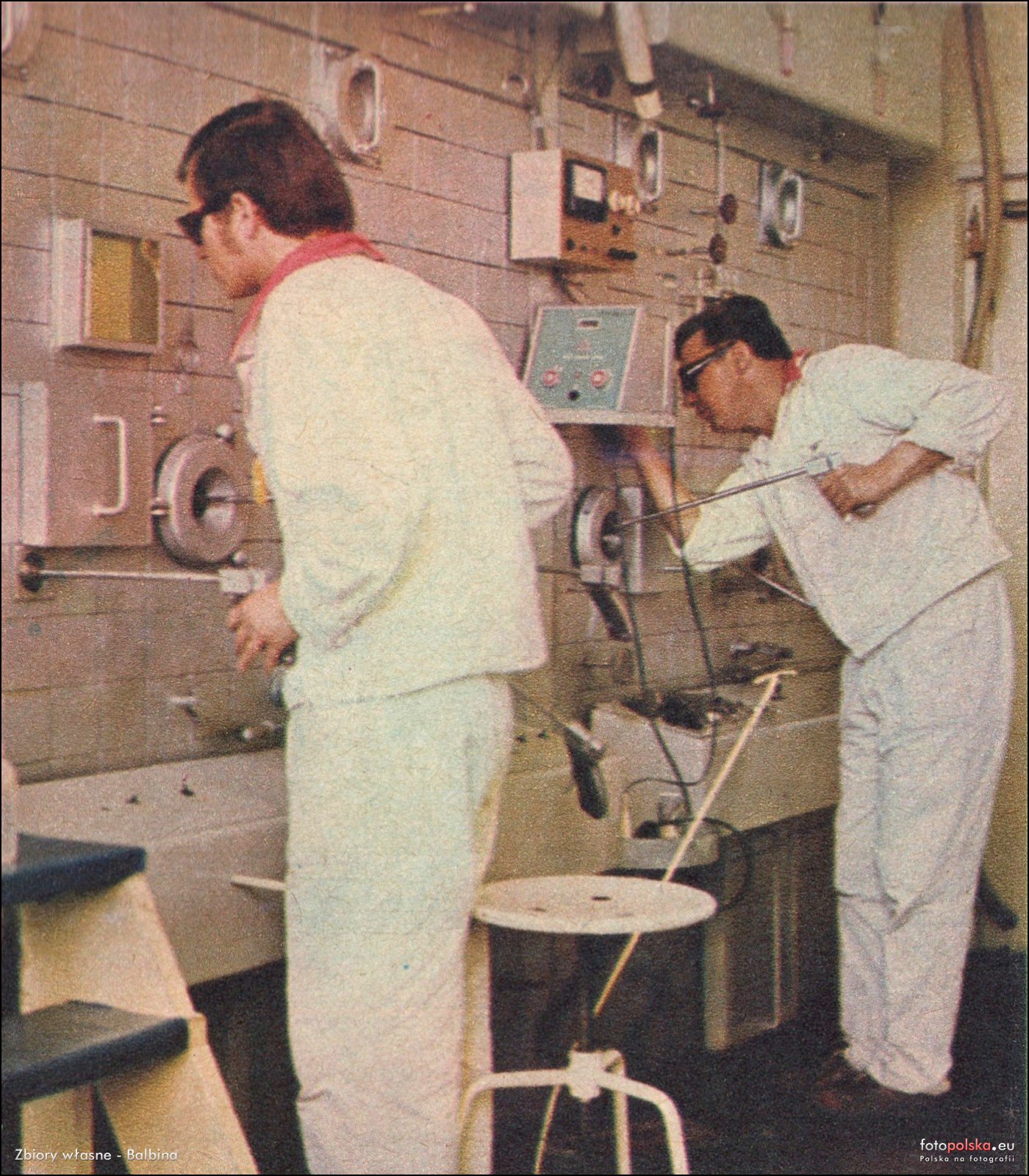 1970 , Radzików, IHAR. "W specjalnych boksach radioaktywne preparaty poddawane są obróbce chemicznej, jak również zostają podzielone na porcje i zapakowane do specjalnych pojemników" - zdjęcie pochodzi z tygodnika Stolica nr 44 (1194) 01.11.1970Skomentuj zdjęcie |