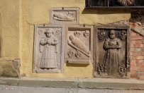 23 sierpnia 2015 , Przerzeczyński kościół oraz mur wokół niego w prawie w całości obłożone są płytami nagrobnymi. Zaobserwować można zmiany sposobu uwieczniania zmarłych jak i modę w poszczególnych epokach od XIV do XVIII w. Na zdjęciu epitafia dziecięce umieszczone na ścianie zachodniej kościoła. Z lewej syn Heinricha von Nimitz zmarły 16.01.1614 r. w wieku 1 roku i chyba 25 dni. Epitafia niemowląt w powijakach należą do dzieci Ernsta von Seidlitza. Górne - Anna von Seidlitz, zm. 12.12.1615 r. w wieku 5 i pół godziny. Dolne Johann Georg von Seidlitz, zm. 18.11.1614 r. w wieku 6 dni. Po prawej płyta córki von Seidlitzów zmarłej 7.04.1610. Teksty odczytane przez Cristoforo - wielkie dzięki.Skomentuj zdjęcie