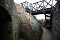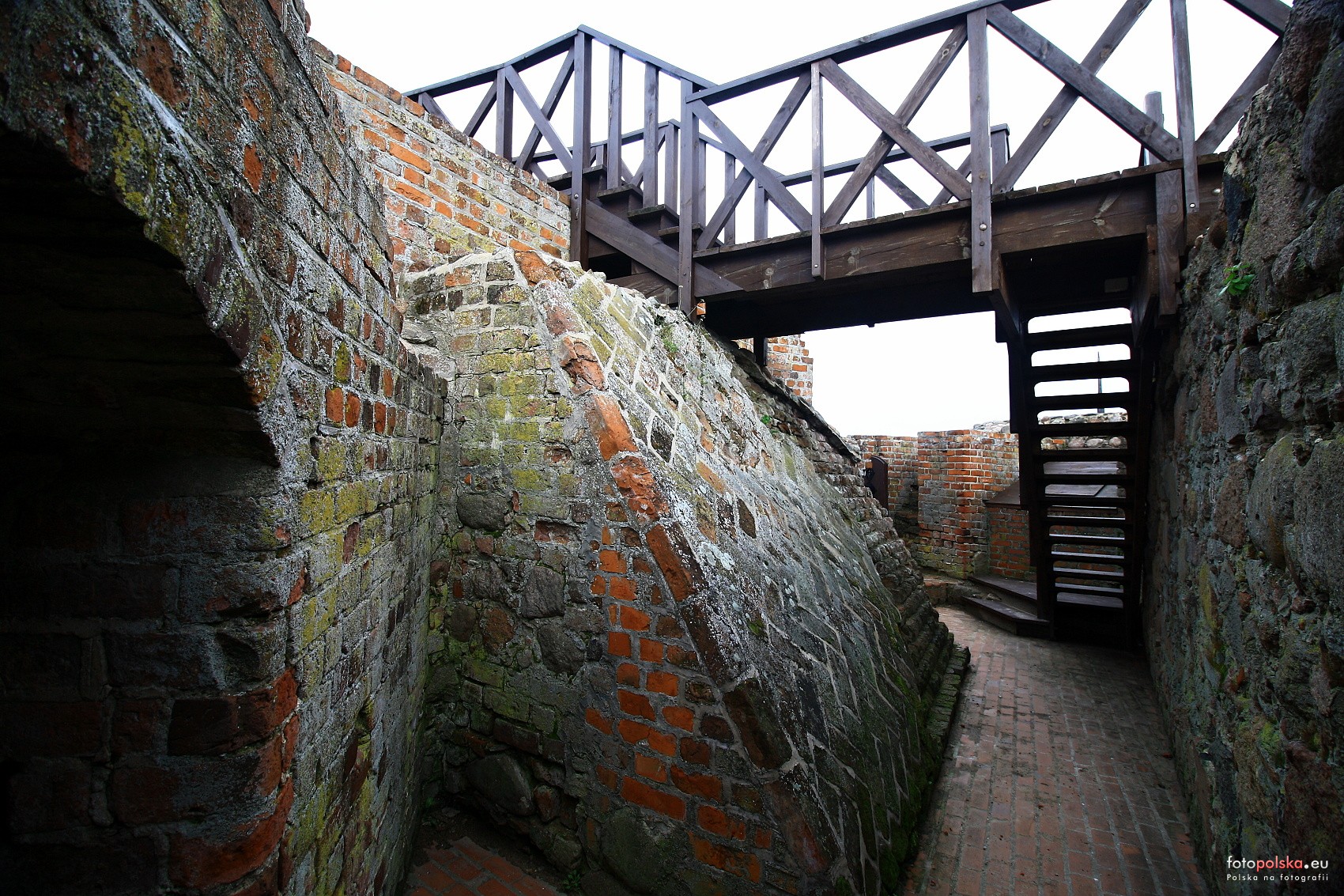 4 maja 2016 , Kladka, i dobrze widoczne "obloźenie" murów ceglami. Chyba tu kiedyś byla kladka na spuśczanie, jeden z elementów obronnych Zamku.