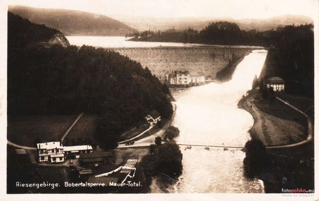 1926 , Pilchowice. Zapora wodna na Bobrze przy wysokim stanie wody.Skomentuj zdjęcie |