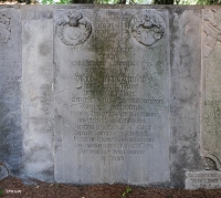 7 lipca 2016 , Przerzeczyński kościół oraz mur wokół niego w prawie w całości obłożone są płytami nagrobnymi. Zaobserwować można zmiany sposobu uwieczniania zmarłych jak i modę w poszczególnych epokach od XIV do XVIII w. Na zdjęciu epitafium na wewnętrznej stronie południowego odcinka muru otaczającego teren kościoła. Upamiętnia Eleonorę Theresę von Lohenstein (3.01.1669 - 30.10.1723). Poniżej tej płyty, po prawej stronie znajduje się fragment (?) kolejnego epitafium, ale czyjego ?Skomentuj zdjęcie