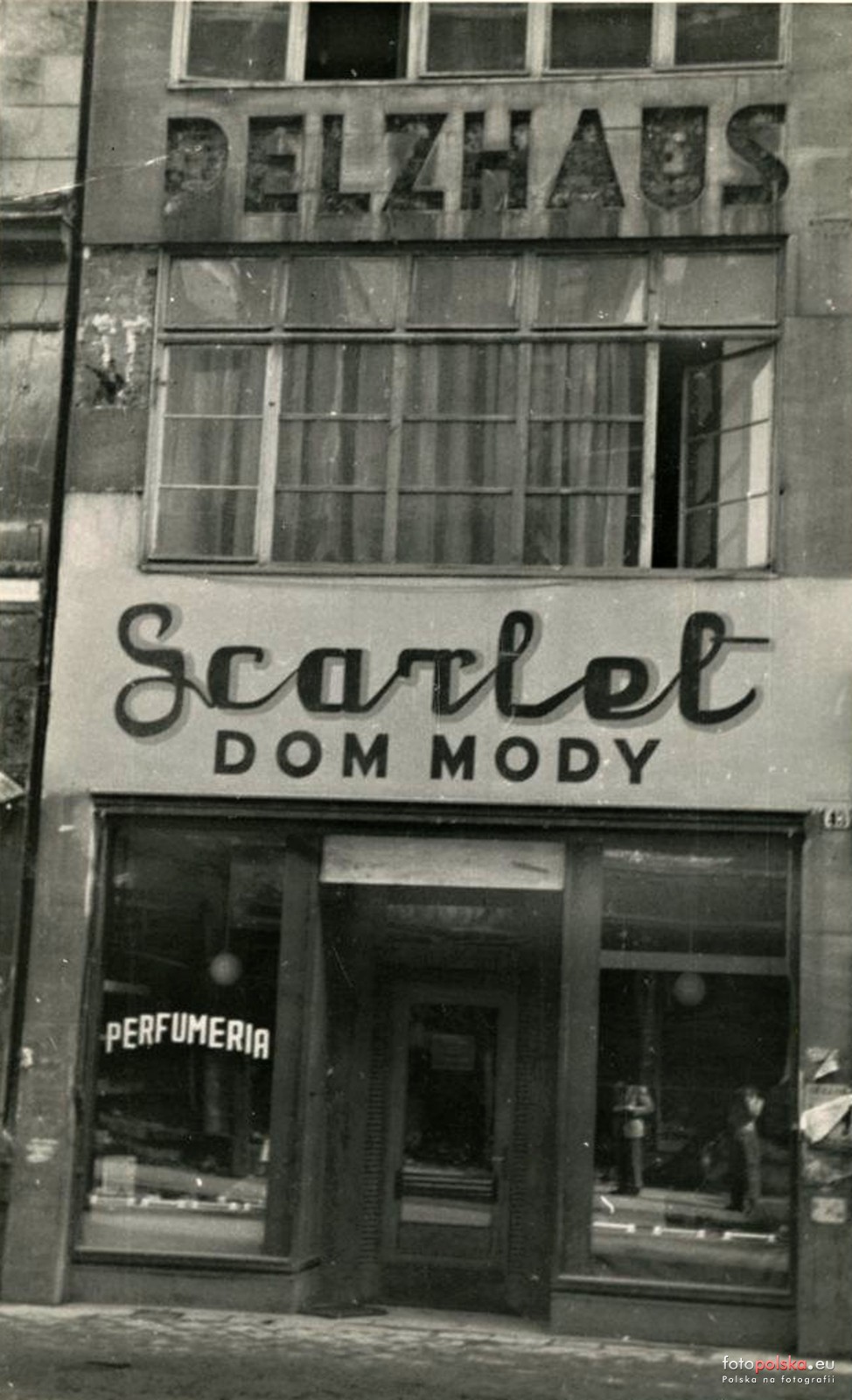 1946 , Prawdopodobnie gdzieś na tzw. ziemiach odzyskanych. Niemiecki Pelzhaus, polski Dom Mody Scarlet, kamienica nr 43Skomentuj zdjęcie