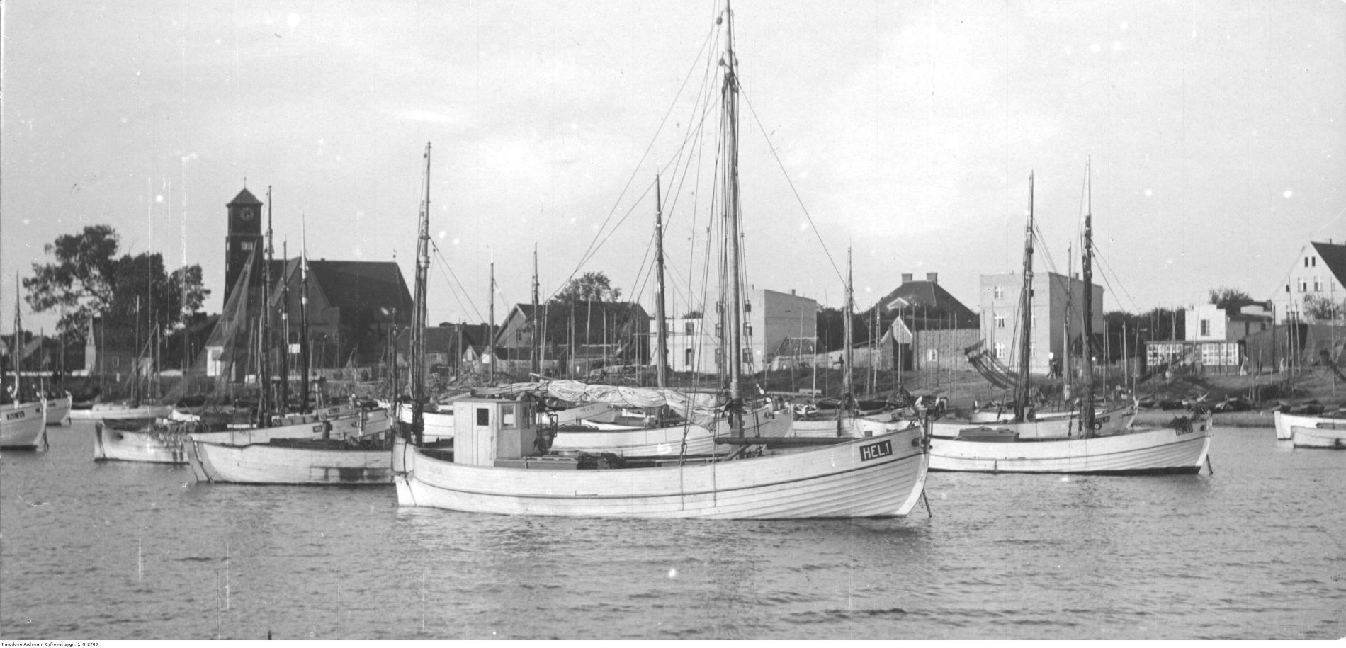 Lata 1925-1930 , Port rybacki w Helu - widoczne kutry rybackie zacumowane w porcie. Zgoda reg. NAC. 1-G-2789Skomentuj zdjęcie |