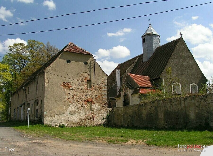 maj 2006 , Sławnikowice - z lewej budynek gospodarczy pałacu, z prawej kościół Najświętszego Serca Pana Jezusa. Do kościoła przylega, pochodząca z 1733 r., kaplica grobowa rodu von Fromberg - zbliżenie kartusza tutajSkomentuj zdjęcie |