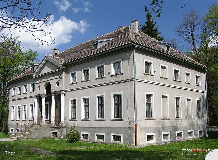 4 pobrania 1389 odsłon 5.75 średnia ocen Poprzednie i następne zdjęcia Thor Obiekty widoczne na zdjęciu Pałac więcej zdjęć (27) Zbudowano: 1812-1815 Dawniej: Schloss Kieslingswalde Pałac z k. XVII w., przebudowany na klasycystyczny w latach 1780-90 i remontowany w pocz. XX w. oraz w roku 1978 i latach 1986-87. Założony na prostokącie o jedenastu i pięciu osiach, dwukondygnacyjny, podpiwniczony. Długie elewacje akcentują trzyosiowe portyki kolumnowe pod trójkątnymi tympanonami. Dach czterospadowy, okna prostokątne w opaskach. Wokół pałacu ciągnie się park krajobrazowy z pocz. XIX w. Dalej stoją zabudowania gospodarcze. Źródło: „Słownik geografii turystycznej Sudetów” t.2 „Pogórze Izerskie” pod redakcją Marka Staffy. Wrocław 1999 |