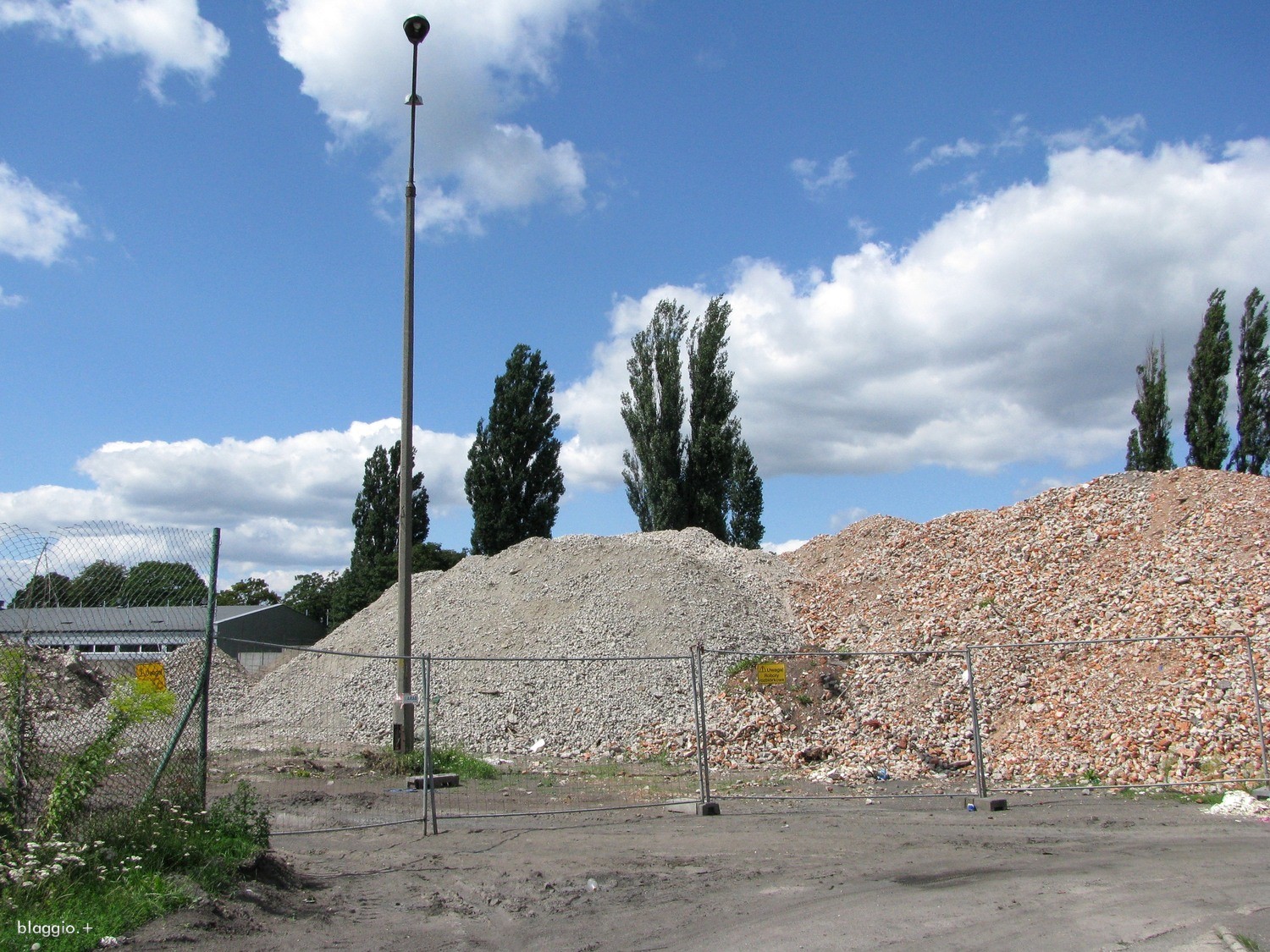 Z niedokończonego budynku wielofunkcyjnego pozostały tylko góry przekruszu betonowego i ceglanego. Dla porównania zdjęcie sprzed rozbiórki: