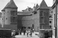 Barbakan więcej zdjęć (280) Architekci: Jan Zachwatowicz, Wacław Podlewski Atrakcja turystyczna Zbudowano: 1548 / 1954 Pierwotnie most wybudowany podczas wznoszenia drugiej linii murów obronnych Warszawy na przejściu ze Starego do Nowego Miasta - około 1548 roku został przebudowany w Barbakan. Projektantem budowli był architekt Jan Baptysta Wenecjanin. Wraz z pobliską Bramą Łazienną i Basztą Prochową tworzył tzw. Bramę Zakroczymską. Już w chwili jego wybudowania barbakan był anachroniczny i nie spełniał ważniejszych funkcji obronnych, głównie wskutek rozwoju artylerii. Tylko raz w swej historii uczestniczył w obronie Warszawy – podczas potopu szwedzkiego, kiedy to wojska króla Jana Kazimierza odbijały go 30 czerwca 1656 z rąk szwedzkich. W XVIII w. barbakan częściowo rozebrano, a w XIX w. jego pozostałości włączono w obręb nowo wybudowanych w jego miejscu kamienic. W latach 1937-1938, pod kierownictwem Jana Zachwatowicza zrekonstruowano fragment murów oraz zachodnią część mostu Barbakanu dzięki wyburzeniu stojącego w tym miejscu domu. Podczas oblężenia Warszawy w 1939 r. oraz powstania warszawskiego cała zabudowa Starówki uległa zniszczeniu. Po wojnie, z braku środków, Biuro Odbudowy Stolicy postanowiło nie odbudowywać kamienic okalających dawne mury miejskie. W zamian postanowiono odsłonić ich pozostałości i odbudować barbakan. Rekonstrukcji dokonano w latach 1952-1954 pod kierownictwem Wacława Podlewskiego na podstawie XVII-wiecznych rycin. W pracach posłużono się m.in. gotycką cegłą z rozebranych kamienic w Nysie i Wrocławiu ul. Nowomiejska więcej zdjęć (544) |