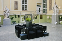 3 pobrania 285 odsłon 6 średnia ocen Poprzednie i następne zdjęcia Mariusz Brzeziński Obiekty widoczne na zdjęciu Dziedziniec muzeum więcej zdjęć (13) Muzeum Narodowe Galeria Sztuki Dawnej więcej zdjęć (25) Zbudowano: 1726-29 Dawniej: Pałac Sejmu Stanów Pomorskich Pałac Sejmu Stanów Pomorskich (Dom Ziemiaństwa, Landeshaus) - gmach przy ul. Staromłyńskiej 27 w Szczecinie zbudowany w latach 1726-29 na zlecenie króla pruskiego Fryderyka Wilhelma I. Projekt budowli wykonał holenderski architekt Gerhard Cornelius van Wallrawe, a pracami budowlanymi kierowali: Hans J. Reinecke i J. H. Trippel. Autorem rzeźb umieszczonych na fasadzie był Bartholome Damart. Budynek wykonany został w stylu północnego, klasycyzującego baroku. Posiada ozdobny tympanon z herbem króla Prus umieszczonym na tle panoplii oraz z dwiema rzeźbami - personifikacjami: Roztropności (postać ze zwierciadłem i wężem) i Sprawiedliwości (z wagą i mieczem). Poniżej - tuż nad wejściem - umieszczono herb Pomorza. Taki układ herbów nie był przypadkowy - miał on podkreślać podporządkowanie Pomorza królowi Prus. Urodę budowli zwiększa boniowana elewacja, ozdobne opaski okienne oraz misterna balustrada balkonu i zewnętrznych schodów. Przestrzeń poddasza ograniczają połacie dachu mansardowego. Budynek został wzniesiony z przeznaczeniem na siedzibę sejmiku pomorskich stanów ziemskich. W latach 1885-88 gmach uległ rozbudowie (wybudowano wówczas dodatkowe skrzydło, a istniejące od strony ul. Staromłyńskiej - przedłużono). W latach 1926-27 budynek został odrestaurowany i zaadoptowany na siedzibę muzeum. Salę posiedzeń byłego Sejmu Stanów przekształcono w salę wystawową. Obecnie w pałacu mieści się Galeria Sztuki Dawnej Muzeum Narodowego w Szczecinie. ul. Staromłyńska więcej zdjęć (265) Dawniej: Luisenstraße |
