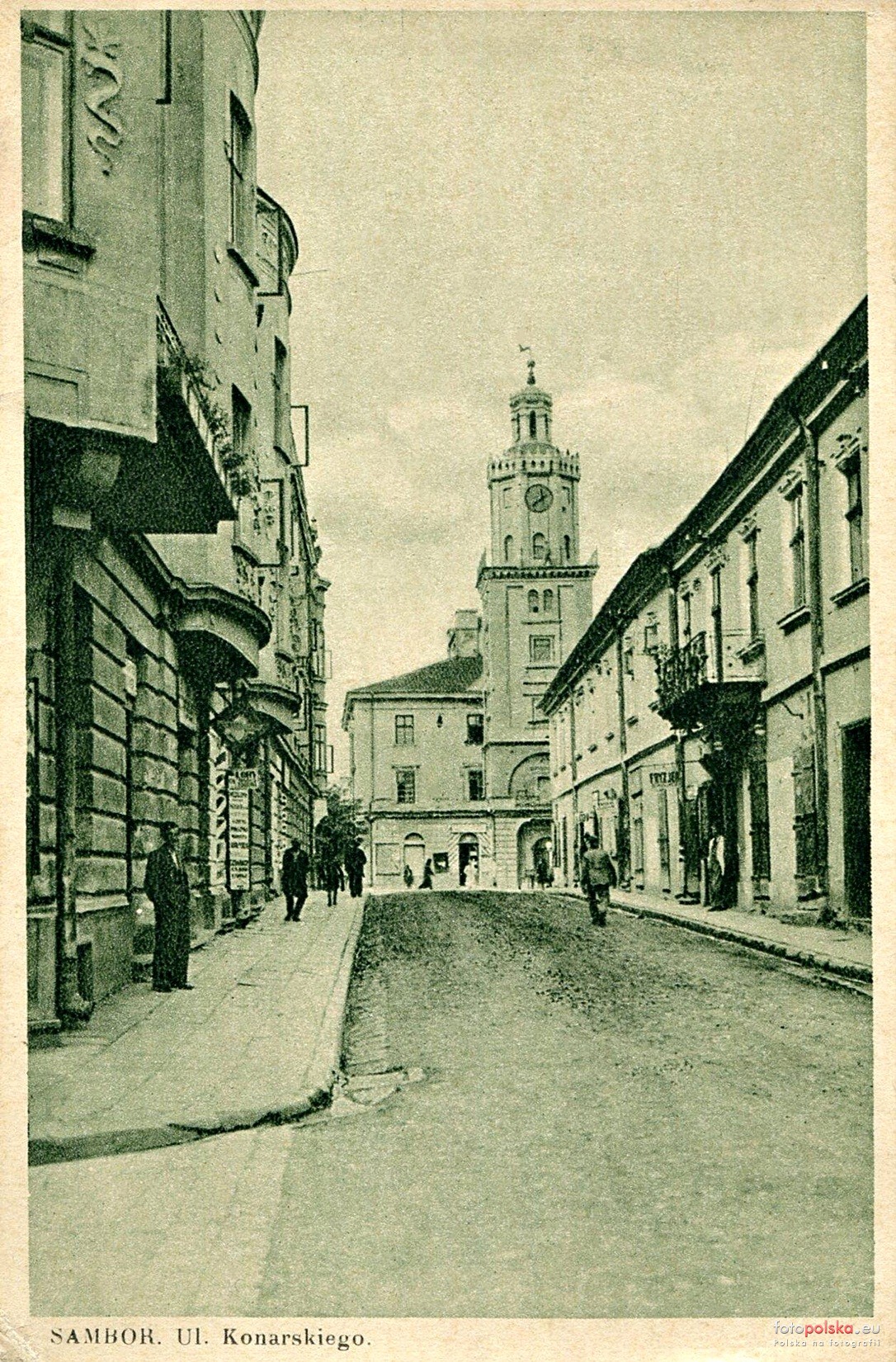 Lata 1920-1939 , Dawna ul. Konarskiego - widok w kierunku Rynku (widoczny Ratusz)Skomentuj zdjęcie |