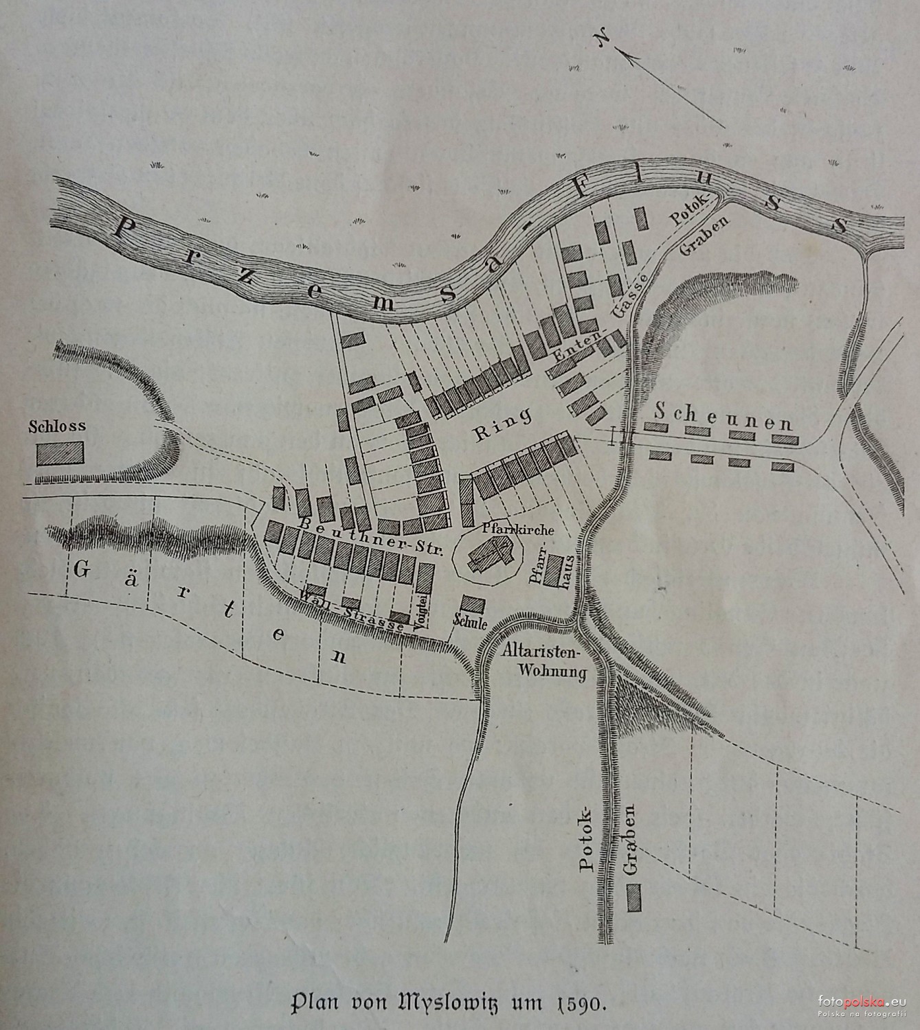 1590 , Plan Mysłowic. Źródło: Miesięcznik Oberschlesien.Skomentuj zdjęcie