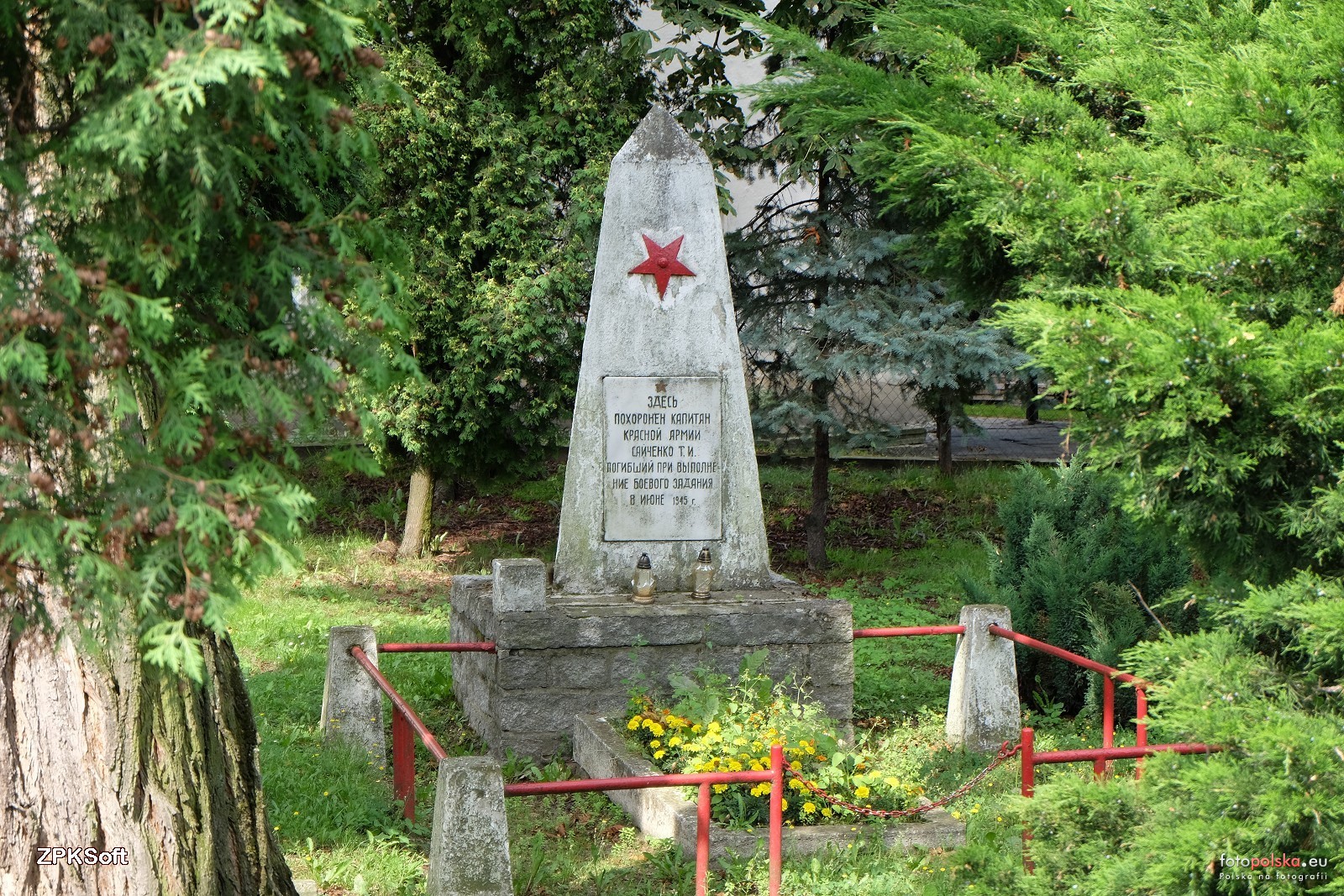 28 lipca 2016 , Cmentarz wojenny żołnierzy Armii Czerwonej założony został w czerwcu 1945 r. Pochowano tu 23 ciała ekshumowane z tymczasowych grobów. Na terenie nekropolii znajdują się 2 groby zbiorowe i 3 indywidualne. Jednak krążą wieści, że pochowano tu o 8 żołnierzy więcej. Na zdjęciu grób indywidualny, tu spoczął kapitan T.I. Saiczenko.Skomentuj zdjęcie |