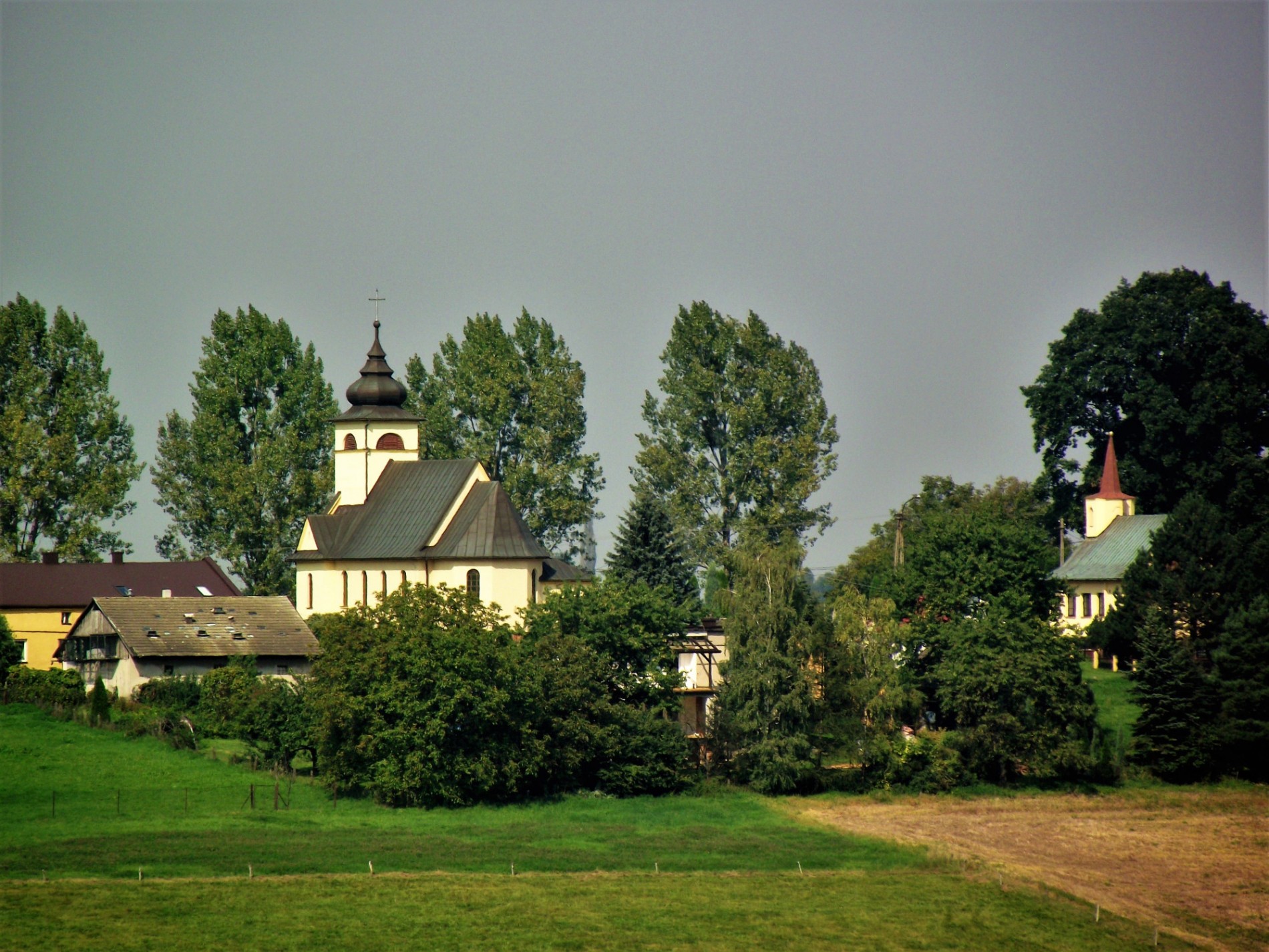 13 września 2016 , Widok z Godziszowa na dwa sąsiadujące ze sobą kościoły w Kisielowie - katolicki po lewej i ewangelicki po prawej.Skomentuj zdjęcie |