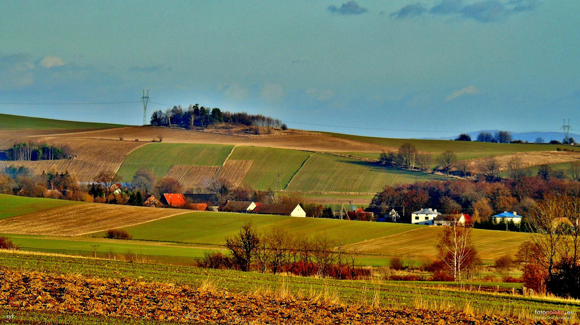 12 grudnia 2015 , Przedborowa, północna część ( nowy budynek z niebieskim dachem, z prawej strony, to dom nr 47). Widok od zachodu, spod kościoła św.Trójcy w Owieśnie.Skomentuj zdjęcie |