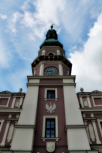 Ratusz więcej zdjęć (369) Architekt: Bernardo Morando Atrakcja turystyczna Zbudowano: 1591 Zabytek: A/294 z 31.03.1967 Manierystyczno-barokowy, główny budynek na zamojskim Starym Mieście. Znajduje się w północnej pierzei Rynku Wielkiego, po stronie zachodniej, jest nieco wysunięty do środka rynku. Posiada 52-metrową wieżę zegarową oraz szerokie, wachlarzowe schody. Rynek Wielki więcej zdjęć (1483) Dawniej: Pl. Mickiewicza, Rathausplatz Rynek Wielki w Zamościu – kwadratowy plac w centrum Starego Miasta w Zamościu, zarazem jego główne miejsce. Wymiary Rynku Wielkiego wynoszą 100 na 100 metrów. Po każdej stronie tego rynku (pierzei) znajdują się kamienice (niemal wszystkie zabytkowe[1]) z podcieniami oraz ratusz, główny obiekt tego placu. Nie jest on położony w jego centrum, jak w większości rynków, m.in. z okresu średniowiecza, lecz w jego północnej pierzei, po stronie zachodniej (na zachód od ulicy Solnej biegnącej na północ od rynku) i nieznacznie wysunięty do środka Rynku Wielkiego. Wiąże się to z wolą założyciela miasta, Jana Zamoyskiego, dla którego najważniejszym obiektem w jego mieście był pałac, dla jakiego ratusz miał nie stanowić konkurencji wśród najokazalszych budowli. Posiada 52 – metrową wieżę zegarową oraz szerokie, wachlarzowe schody dobudowane w XVIII wieku. Od zachodniej i wschodniej pierzei rynku biegną po 3 ulice (S. Staszica w obu kierunkach, Grodzka w obu kierunkach, H. Kołłątaja na zachód, Ormiańska na wschód), natomiast w osi północ-południe po jednej (Solna i B. Moranda). Wyjątkowo od północnej krawędzi Rynku Wielkiego biegnie na północ druga ulica, Ratuszowa, jaka pojawiła się w XVII wieku po oddzieleniu ratusza od kamienic po jego zachodniej stronie. Jako główna arteria uchodziła prowadząca do pałacu (\\\"głowy\\\" miasta) ulica Grodzka, jaka przecina rynek (\\\"serce\\\") na linii wschód-zachód, stanowiąca jego \\\"kręgosłup\\\", od którego odbiegały dwa \\\"ramiona\\\"[2], tj. wspomniane ulice Solna i B. Moranda. Za wiki |