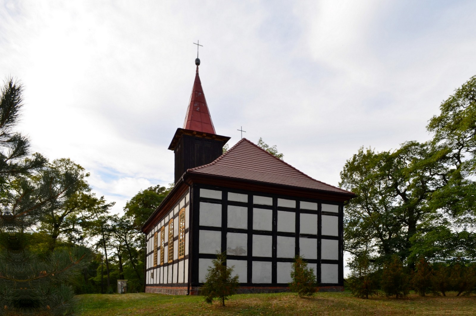 4 pobrania 642 odsłony 6 średnia ocen Poprzednie i następne zdjęcia fralat Obiekty widoczne na zdjęciu Kościół Narodzenia Najświętszej Maryi Panny więcej zdjęć (6) Zbudowano: 1 poł. XVIII w. Dawniej: Kościół ewangelicki Zabytek: A - 1018 z 22.12.1965 Położenie. Wieś w gm. Widuchowa, ok. 20 km na pd. od Gryfina. Kościół poewangelicki p.w. Narodzenia NMP 1 poł. XVIII w. Małżeństwo Justyna i Jerzy Chrabeccy, corocznie w 2 weekend lipca organizują Europejskie Spotkanie Osób Niepełnosprawnych. Kościół szachulcowy, konstrukcji słupowo – ramowej. Salowy, bez wyodrębnionego z nawy prezbiterium, zamknięty prostokątnie. Wieża drewniana od frontu, osadzona na nawie. Zwieńczona hełmem ostrosłupowym. Dach jednokalenicowy. Strop belkowany. Empora muzyczna z XIX w. Współczesny obraz autorstwa Małgorzaty Grabowskiej, z przedstawieniem MB Patronki Niepełnosprawnych przygarniającą do siebie osobę znajdującą się na wózku inwalidzkim. Także warto zobaczyć. Park podworski. Dąb „Piast” o obw. „710”. Za: |