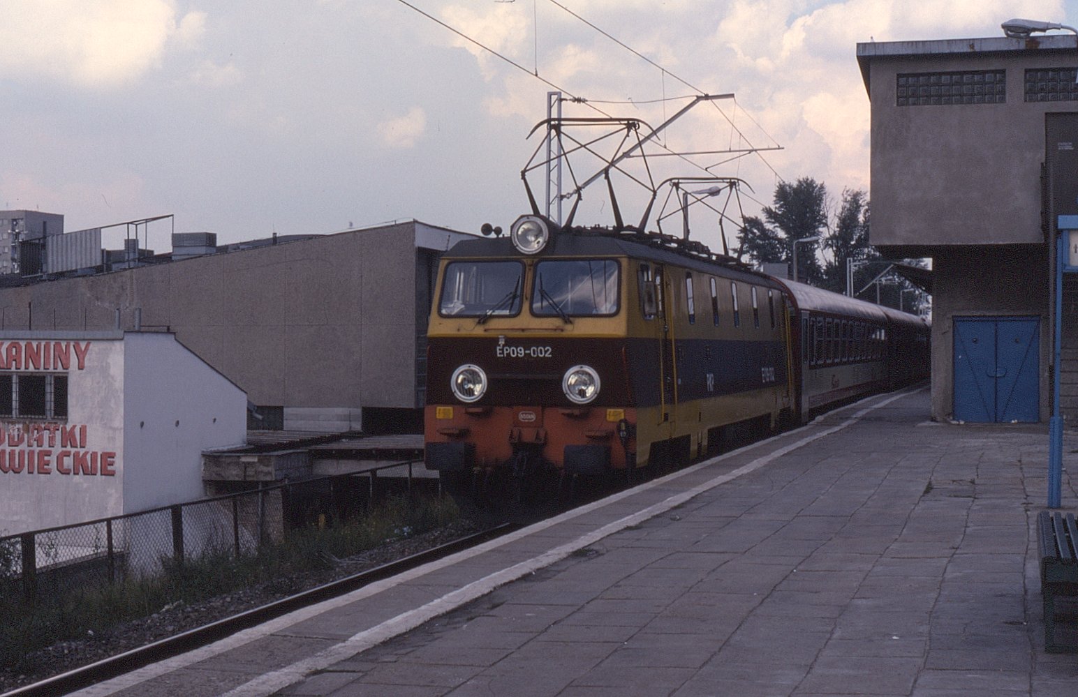 12 września 1995 , Lokomotywa EP09-002 ze składem osobowym wjeżdża na stację Warszawa Wschodnia.Skomentuj zdjęcie |