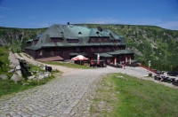 Schronisko górskie PTTK "Strzecha Akademicka" więcej zdjęć (242) Atrakcja turystyczna Zbudowano: 1654; 1896 Dawniej: Hampelbaude Zabytek: A/1355/641/J z 30.05.1980 Strzecha Akademicka – schronisko PTTK znajdujące się na terenie Karkonoskiego Parku Narodowego, na jednym ze szlaków prowadzących z Karpacza na Śnieżkę. Położone 1258 m n.p.m., pomiędzy Kotłem Małego Stawu i Białym Jarem, około 10 minut drogi od innego schroniska, Samotni. Historia schroniska : Strzecha Akademicka (obok schroniska Pod Łabskim Szczytem) uważana jest za najstarsze schronisko w Karkonoszach. Buda pasterska malowniczo stojąca na Polanie Złotówka, przy starym Trakcie Śląskim, służyła górskim wędrowcom już w I połowie XVII wieku. Wzmiankowany u Gryphiusa w 1645 r. Daniel Steiner (stąd nazwa budy Danielsbaude) był następcą niejakiego Tanla (Tanlabaude), który tu gospodarzył już w 1642 roku. Pierwsi właściciele słynęli ze znakomitej nalewki na szyszkach i gry, na rogu bądź trąbie, na powitanie i pożegnanie gości. Wraz z rozwojem ruchu turystycznego pasterska buda zmieniała swój wygląd i przeistaczała się w prawdziwe górskie schronisko. Po niejakim Samuelu buda przeszła w ręce rodziny Hamplów (1758-1863) i od ich nazwiska uzyskała nazwę Hampelbaude, do dziś znaną i używaną w języku niemieckim. Od 1696 do 1824 roku w schronisku wykładane były pamiątkowe księgi i stąd wiadomo, że we wrześniu 1790 roku w budzie Hampla nocował J.W. Goethe, który co rano podziwiał wschód słońca. W 1896 roku w miejscu drewnianej budy wybudowano nowy, duży obiekt, który spłonął 1 kwietnia 1906 roku. Bardzo szybko, bo już 8 września tego samego roku uruchomiono po odbudowie hotel górski, rozbudowany jeszcze w 1912 roku, który w mało zmienionej postaci dotrwał do dziś. Był niezwykle nowocześnie urządzony; miał elektryczne oświetlenie, centralne ogrzewanie, wygodnie urządzone pokoje z bieżącą wodą oraz łazienki. Służył turystom latem i zimą. Wielką atrakcją były zjazdy rogatymi saniami torem saneczkowym prowadzącym aż do Karpacza (obecnie żółty szlak turystyczny). Po wojnie schronisko przejęło YMCA z Krakowa, potem prowadzili je studenci wyższych uczelni krakowskich (Centrala Akademickiego Zrzeszenia Sportowego) i z tego okresu pochodzi dzisiejsza nazwa schroniska. W latach 1950-1956 był tu dom wczasowy FWP. Od 1957 roku Strzecha Akademicka jest własnością Polskiego Towarzystwa Turystyczno-Krajoznawczego. Ważne dla funkcjonowania schroniska zimą było zainstalowanie na Hali Złotówka w latach 70. wyciągu orczykowego. W ostatnich latach było poważnie modernizowane. W roku 1995 położony został nowy miedziany dach, w latach 2000-2003 wymienione zostały w całym schronisku okna i wyremontowane sanitariaty i prysznice. Schronisko zostało wyposażone w saunę i inne urządzenia rekreacyjne. Info za [ Wikipedia] ul. Na Śnieżkę więcej zdjęć (2233) |