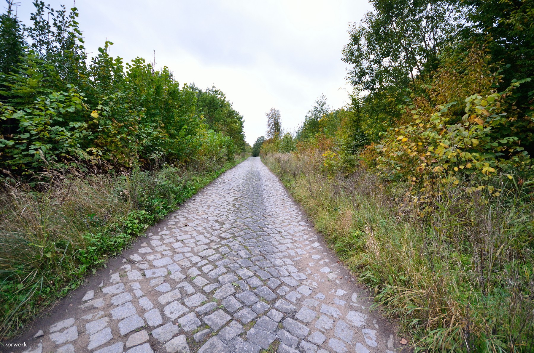 wrzesień 2016 , Brukowana droga na terenie dawnej kwatery. Po obu stronach drogi znajdują się schrony i pozostałości baraków.Skomentuj zdjęcie |