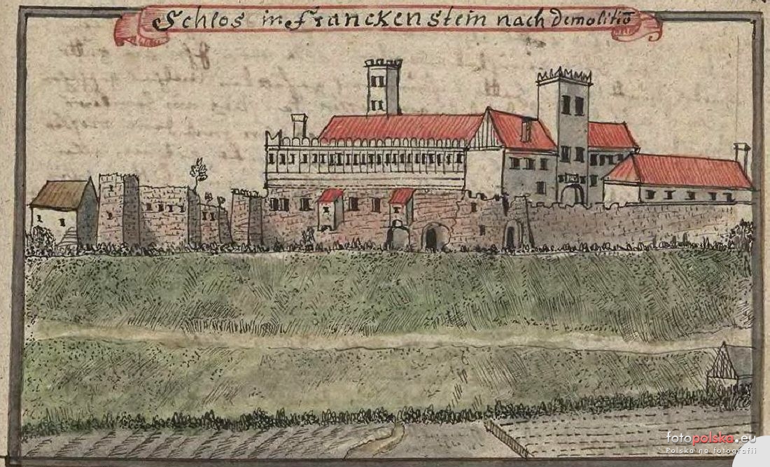 Lata 1740-1760 , Zamek w Ząbkowicach na na rysunku F.B. Wernera z Topographia Seu Compendium Silesiae. Pars II (w Bibliotece Uniwersytetu Wrocławskiego).
