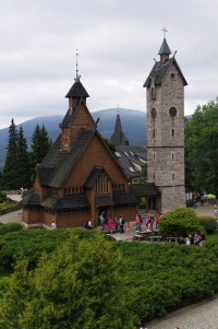 Kościół ewangelicko-augsburski Wang więcej zdjęć (469) Atrakcja turystyczna Zbudowano: 1842-1844 Dawniej: Kirche Wang Zabytek: A/1365/495 z 11.12.1958 Świątynia Wang. Ciekawi, cieszy oko, zachwyca. Przez wielu uważana jest za największą atrakcję Karpacza. Za tą tezą przemawia kilka faktów. Po pierwsze, jest to realna budowla, powstała na przełomie XII i XIII wieku w norweskiej miejscowości Vang, nad jeziorem o takiej samej nazwie. Z czasem przestała spełniać swoje funkcje i wystawiono ją na sprzedaż. Kościółek kupił król pruski Fryderyk Wilhelm IV. Rozebrany i spakowany obiekt, trafił drogą morską do Szczecina, a następnie – już na kołach – do Berlina. Miał zasilić ekspozycję Królewskiego Muzeum, jednak do tego nie doszło. Mówiąc w skrócie, w przypływie dobroci, król ofiarował świątynie swoim poddanym. Wcale nie przypadkowo trafiło na wiernych z Karpacza, którzy wcześniej nie mieli własnego domu modlitw. W 1842 roku, budowla została przetransportowana do Karpacza, gdzie miała służyć lokalnym ewangelikom. Powszechnie uważa się, że niemały udział miała w tym hrabina Fryderyka von Reden, zamieszkująca w pobliskim Bukowcu. Już w 1844 roku dokonano poświęcenia oraz uroczystego otwarcia, w którym udział brała, m.in. królewska para. Mamy tu do czynienia z prawdziwym zabytkiem o pasjonującej przeszłości. Po drugie, Świątynia reprezentuje typową skandynawską architekturę, której przecież nie spotykamy na każdym kroku. Wyobrażenia mitycznych stworzeń, bizantyjskie kapitele, smocze paszcze uwolnione z drewna, czy podpisany runami ołtarz. Unikat – słowo klucz. I po trzecie, krótko o liczbach – ponad 200 tysięcy odwiedzających to miejsce każdego roku. Ponoć liczby nie kłamią. W sezonie letnim, świątynie można zwiedzać w godzinach 9:00 – 18:00, z kolei w okresie zimowym – o godzinę krócej. Cena biletu normalnego wynosi 7 złotych, z kolei za bilet ulgowy należy zapłacić 4 złote. Na terenie obiektu nie ma przewodnika. Jego nieobecność, rekompensuje nagranie CD, odtwarzane w momencie, gdy zbierze się grupka minimum 10 osób. Info. ul. Na Śnieżkę więcej zdjęć (2233) |