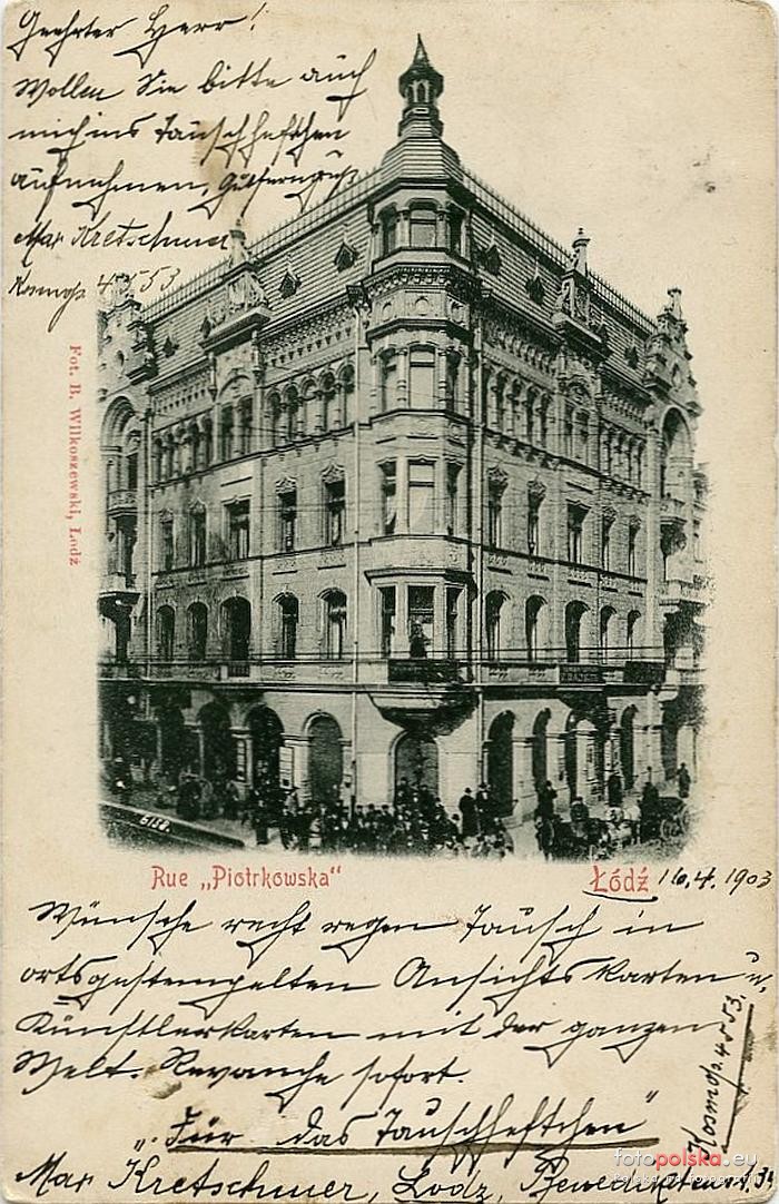 19 pobrań 1473 odsłony 6 średnia ocen Poprzednie i następne zdjęcia zeto Obiekty widoczne na zdjęciu Piotrkowska 12 więcej zdjęć (17) Architekt: Dawid Lande Zbudowano: 1898 Dawniej: Kamienica Dawida Senderowicza Zabytek: nr rej. A/64 z 20.01.1971 Kamienica powstała w 1897 roku według projektu architekta Dawida Lande, na zamówienie Dawida Sendrowicza. W 1908 roku kamienicę nabył Z. Liebermann. Na czterokondygnacyjnym budynku odnaleźć można motywy neoromańskie, neogotyckie i neorenesansowe, tworzące konglomerat. Zwraca uwagę wykusz nakryty pięknym hełmem i dwa pseudoryzality ze szczytami zdobionymi m.in. płaskorzeźbami smoków i delfinów. Wikipedia Pocztówki B. Wilkoszewskiego więcej zdjęć (66) Fotografie Bronisława Wilkoszewskiego więcej zdjęć (13) Dawniej: (ur. 1847 w Szczekocinach, zm. 11-06-1901 w Łodzi) ul. Rewolucji 1905 r. więcej zdjęć (191) Dawniej: Południowa, Zieten Strasse Ulica Rewolucji 1905 r. w Łodzi ma około 1,5 kilometra długości, biegnie od Piotrkowskiej do Uniwersyteckiej (dawna ulica Południowa). Plan regulacji Łodzi z 1823 roku Plan Łodzi z 1823 roku Powstała około roku 1823 wraz z wyznaczeniem Nowego Miasta. Nowa osada została umiejscowiona na przeciwległym brzegu rzeczki Łódka, na południe od Starego Miasta. Osiedle zaprojektowane zostało na bazie kwadratu z oktagonalnym rynkiem (Rynek Nowego Miasta - dzisiejszy plac Wolności), na którym krzyżowały się prostopadłe ulice. Kontur osady ograniczały ulice: Zachodnia, Północna, Wschodnia i Południowa. * W czasie wojny zmieniono nazwę na Zietenstrasse.. * Po wojnie, w czasach PRL-u zmieniono na ul. Rewolucji 1905 roku - nazwa ta pozostała do dziś. |