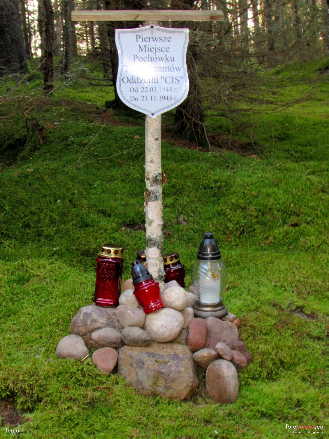 22 listopada 2016 , Pierwsze miejsce pochówku - nieopodal bunkra - 7 partyzantów Oddziału "CIS" w okresie od 22.03.1944 do 21.11.1945 r.Skomentuj zdjęcie |