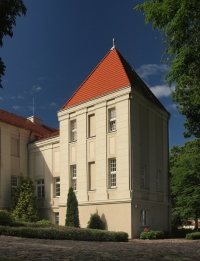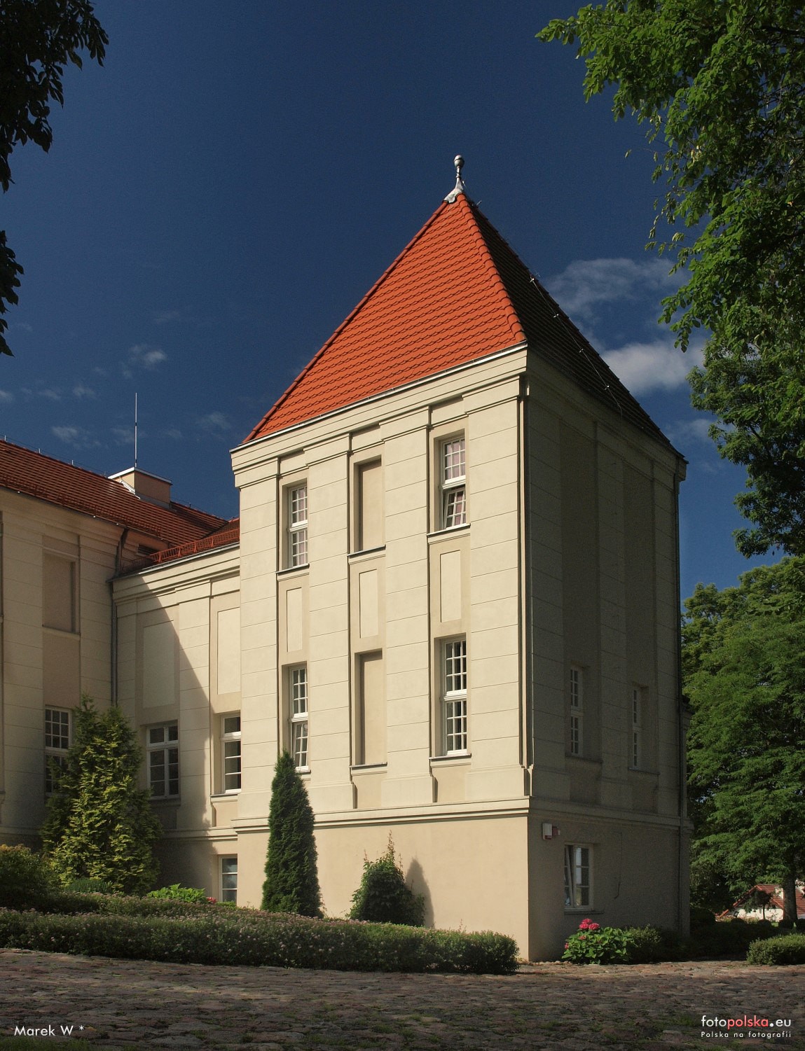 Pałac więcej zdjęć (26) Zbudowano: 1794 Zabytek: 1238 z 12.06.1968 Neobarokową budowlę, murowaną z cegły, podpiwniczoną, z użytkowym poddaszem, wzniesiono na planie prostokąta. W elewacji frontowej usytuowano trzy dwukondygnacyjne, mocno wysunięte ryzality: dwa na narożach, przykryte wysokimi dachami czterospadowymi i jeden pośrodku, zwieńczony trójkątnym naczółkiem z owalnym oknem pośrodku, przykryty dachem dwuspadowym. Od strony ogrodu znajduje się duża, półkolista weranda, do której prowadzą szerokie murowane schody. Tą część elewacji zwieńczono również trójkątnym naczółkiem. Ściany pałacu ozdobione zostały pilastrami i szerokimi, uskokowymi gzymsami. W jego otoczeniu znajdują się pozostałości dawnego parku, a także dziewiętnastowieczne budynki gospodarcze, niektóre z nich już odrestaurowane, jak kuźnia i wozownia. W nieznacznym oddaleniu od rezydencji (około 0,5 km), po stronie zachodniej, znajduje się dawny cmentarz rodowy właścicieli majątku. Źródło: Zespół pałacowo-parkowy więcej zdjęć (8) Majątek ziemski istniał w tym miejscu już w XIV wieku. Z zachowanych dokumentów wynika, że w 1325 roku nadanie ziemskie otrzymali tu Prusowie – Glabune i Kunike. W późniejszych latach dobra te przeszły na własność rodu von Eppingen, a następnie von Petzdorf i von Wernsdorf (1603-1791). Pod koniec XVIII wieku majątek nabył Ahasverus von Brandt, a od lat 30-tych XIX wieku do 1945 roku była to własność rodziny Volprecht. Pałac wzniesiono w 1794 roku. W połowie XIX wieku przeprowadzono jego rozbudowę, a w 1913 roku przebudowano go. Po drugiej wojnie światowej na terenie majątku utworzono Państwowe Gospodarstwo Rolne, natomiast pałac zaadaptowano na biura i mieszkania pracownicze. Po likwidacji PGR-ów z początkiem lat 90-tych XX wieku, majątek przejęła Agencja Własności Rolnej Skarbu Państwa. W 2000 roku gospodarstwo wraz z zespołem pałacowo-parkowym nabyła od Agencji spółka Baltic Investment z Gdańska, która prowadziła tu produkcję roślinną i hodowlę bydła. Od wiosny 2008 roku nowym właścicielem jest spółka Aurepio z Warszawy, która po remoncie otworzyła w pałacu ośrodek konferencyjno-wypoczynkowy. Źródło: |