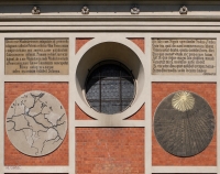 Zainteresowanych widocznym zegarem słonecznym odsyłam do ciekawego tekstu na jego temat .