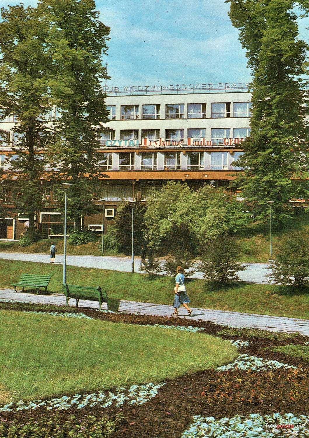 Lata 1975-1976 , Klub Międzynarodowej Prasy i Książki od strony ówczesnej ulicy Lampego. Na budynku widoczne hasło "Czytaj Trybunę Ludu". |