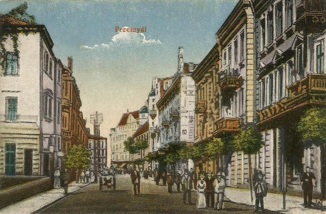 Lata 1912-1917 , Ulica Adama Mickiewicza na starej widokówce - kamienica po lewej stronie to dziś numer 8, a budynki z prawej mają numery 9 i 10.Skomentuj zdjęcie