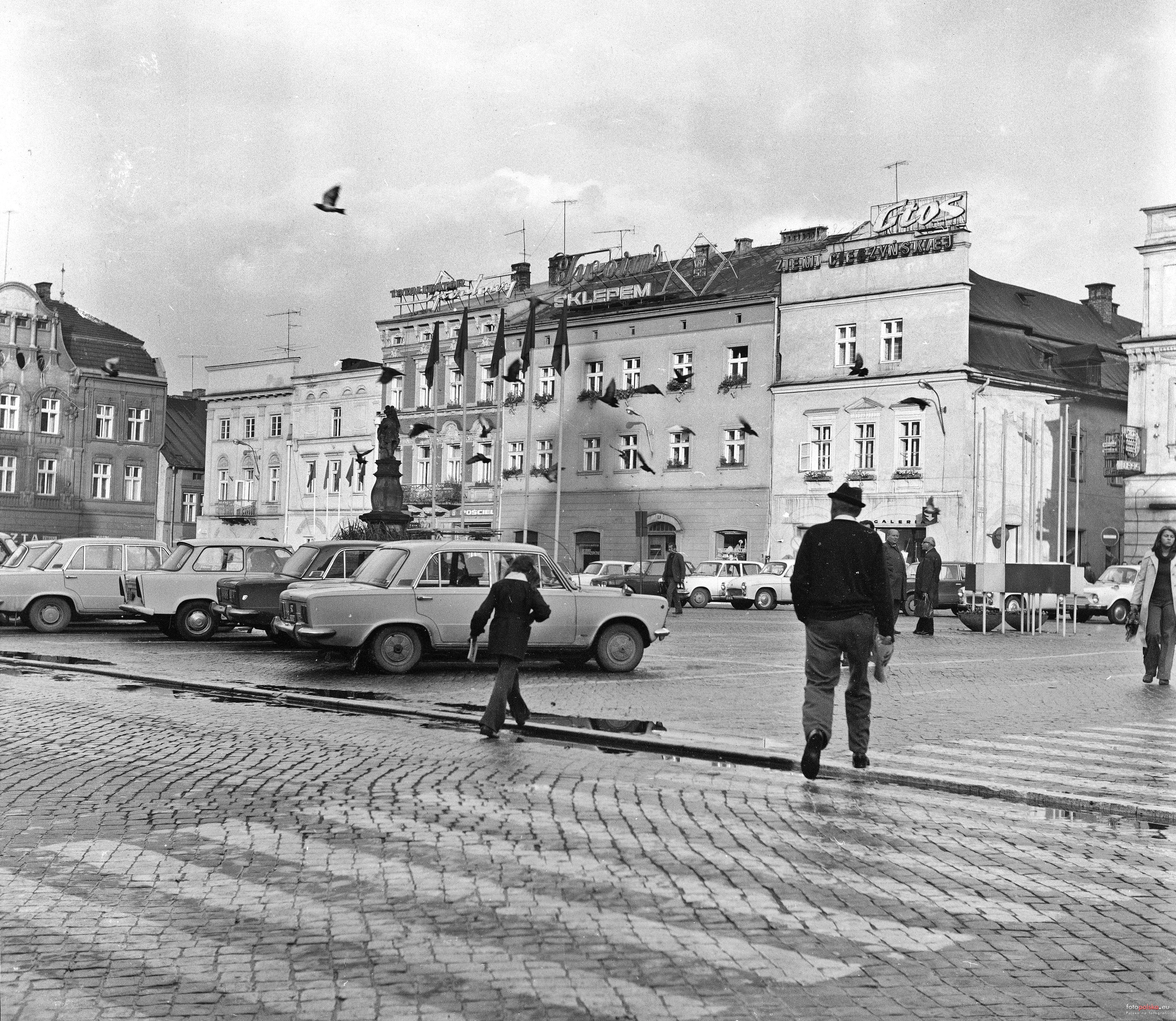 Na rogu, u wylotu ulicy Szersznika była Galeria Sztuki, nieco dalej sklep z pościelą. No i widać trzy duże neony na dachach 2016-12-12 23:59:37 (9 lat temu)