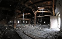 10 kwietnia 2010 , Poddasze szerokiej wieży nad wejściem głównym - - po prawej stronie drzwi do których się wchodzi po drewnianych schodkach a ta drabina prowadzi do klapy na dach - na którym jest wielki neon WROCŁAW GŁÓWNY.Skomentuj zdjęcie