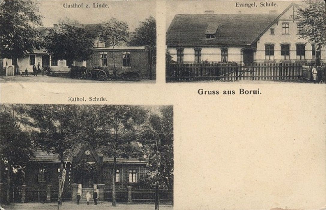 1916 , Boruja - zajazd, szkoła ewangelicka i szkoła katolicka - obecnie kaplica Matki Boskiej Częstochowskiej.Skomentuj zdjęcie |