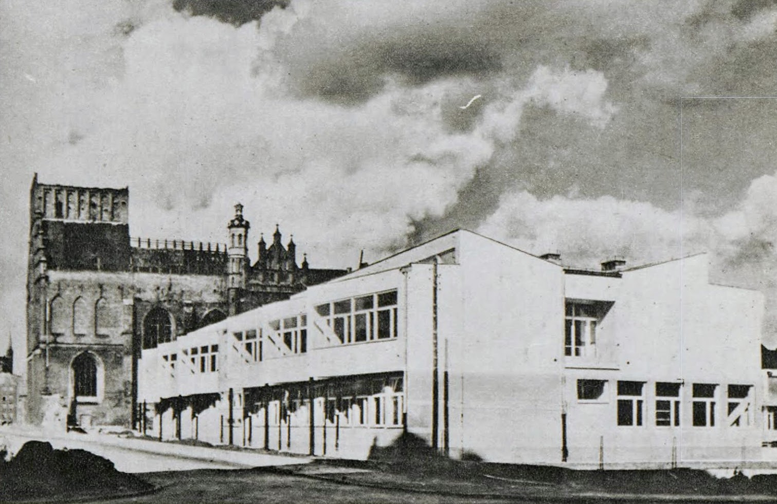 Szczecin, skrzyzowanie przy Bramie Portowej w trakcie pierwszej przebudowy, rok 1969.