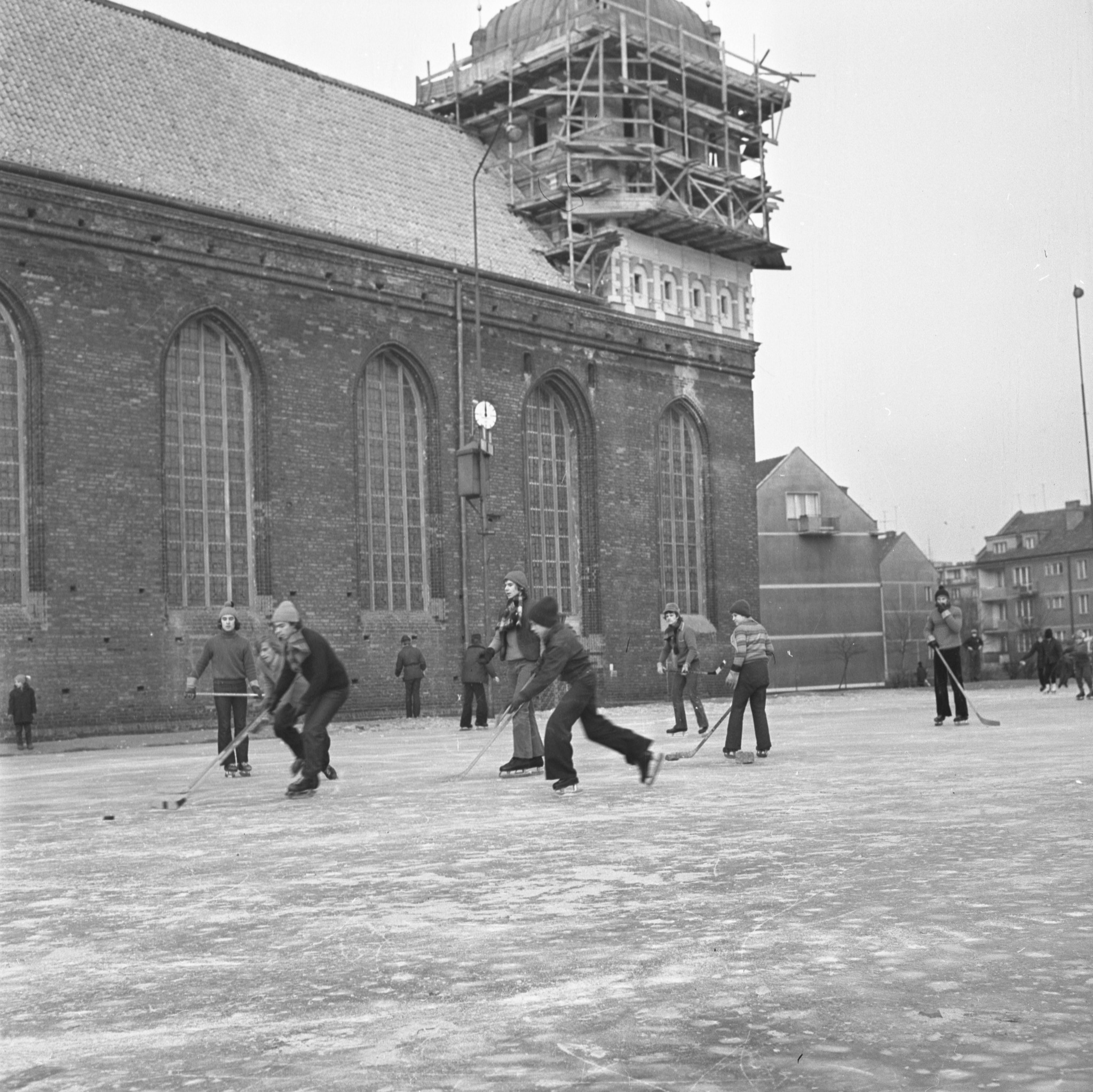 Szczecin, skrzyzowanie przy Bramie Portowej w trakcie pierwszej przebudowy, rok 1969.