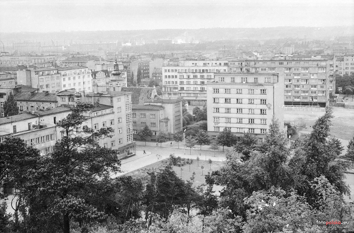 Szczecin, skrzyzowanie przy Bramie Portowej w trakcie pierwszej przebudowy, rok 1969.
